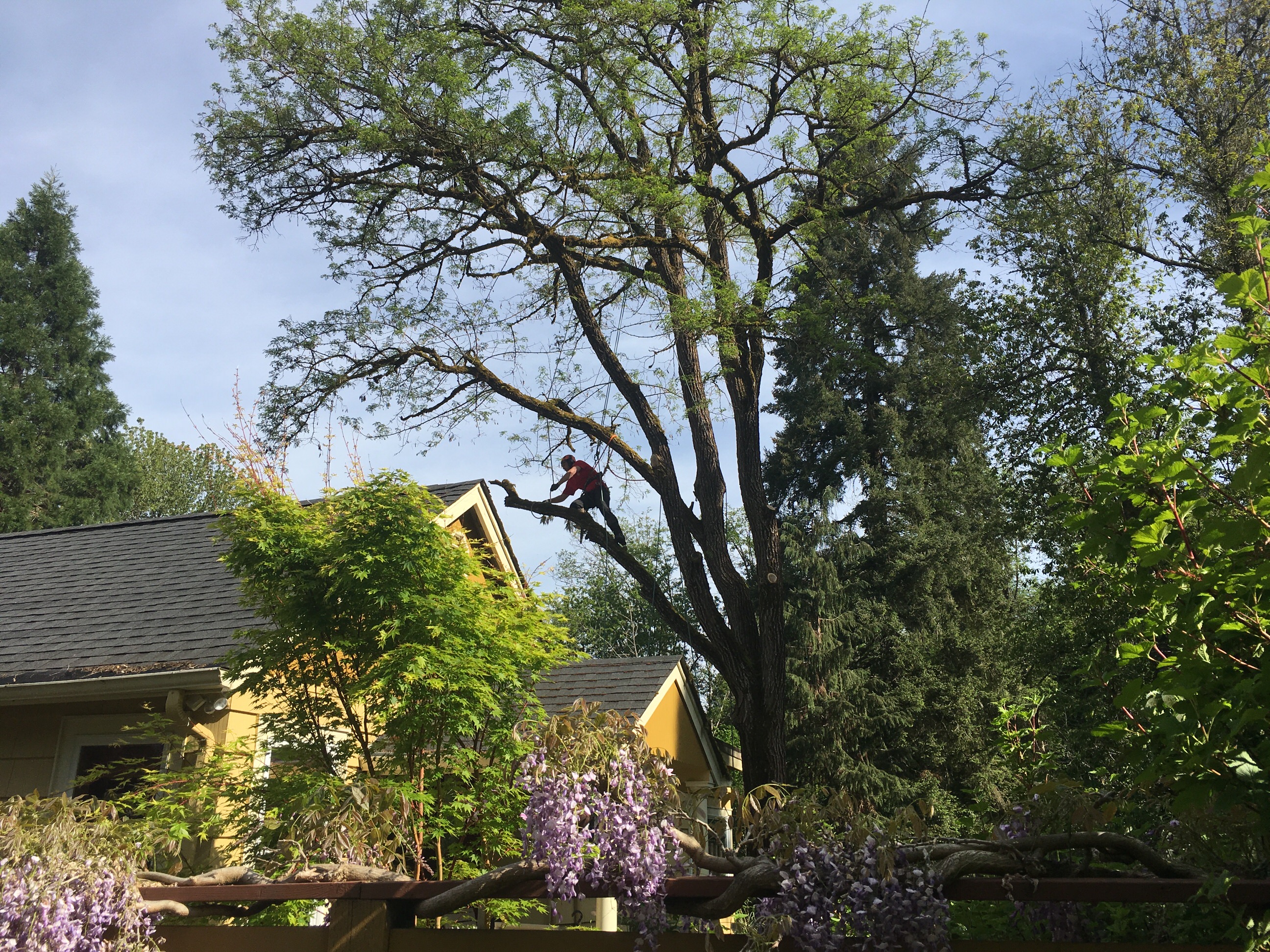 Crown-thinning and deadwood removal opens the canopy of a tree, reduces end-weight on heavy limbs, distributes light throughout the tree and helps restore the tree’s natural shape. We do this by removing dead, diseased, crowded or weak branches from your tree or shrub. In almost all trees, we climb without using climbing spurs and adhere to all of the International Society of Arboriculture standards of proper tree care.